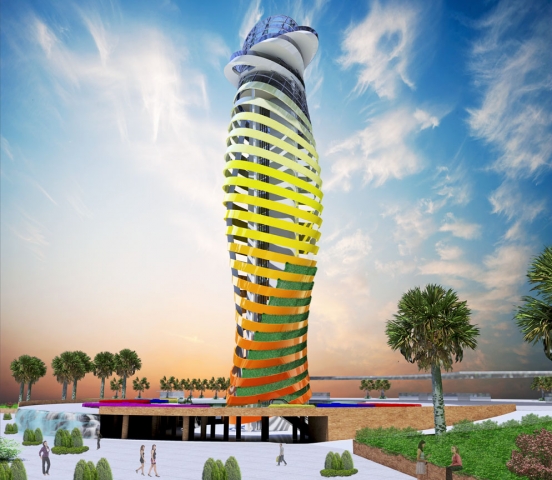 Çocuğun ve çiçeğin ortak paydası hareket ve renk olarak belirlendi. Kule yapısının dinamik, canlı ve renkli bir yapı olması istendi. Alt meydandan seyir alanlarına ulaşımın sağlandığı düşey sirkülasyon hattı oluşturuldu. Bu hat bir kabuk ile sarıldı. Bu kabuk 270 derece döndürüldü. Kabuk yatay çelik halkalardan oluşurken düşeyde 4 çelik kolon ile stabil hale getirildi. Oluşan form hareket halindeki bir araçtan, yürüyen insanlar tarafından dönen, devinen bir algı oluşturması, farklı açılardan farklı perspektifler sunarak çocukların ve diğer ziyaretçilerde merak uyandırması istenmektedir.